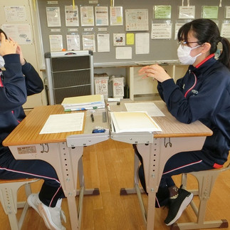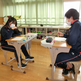 中3学級では、国語の「合意形成」の学習。他者と意見を述べあいながら、よいところを取り入れてまとめるという学習です。課題は「高校でたくさん友だちを作るために」というもの。本気で話し合える、いい課題ですね。